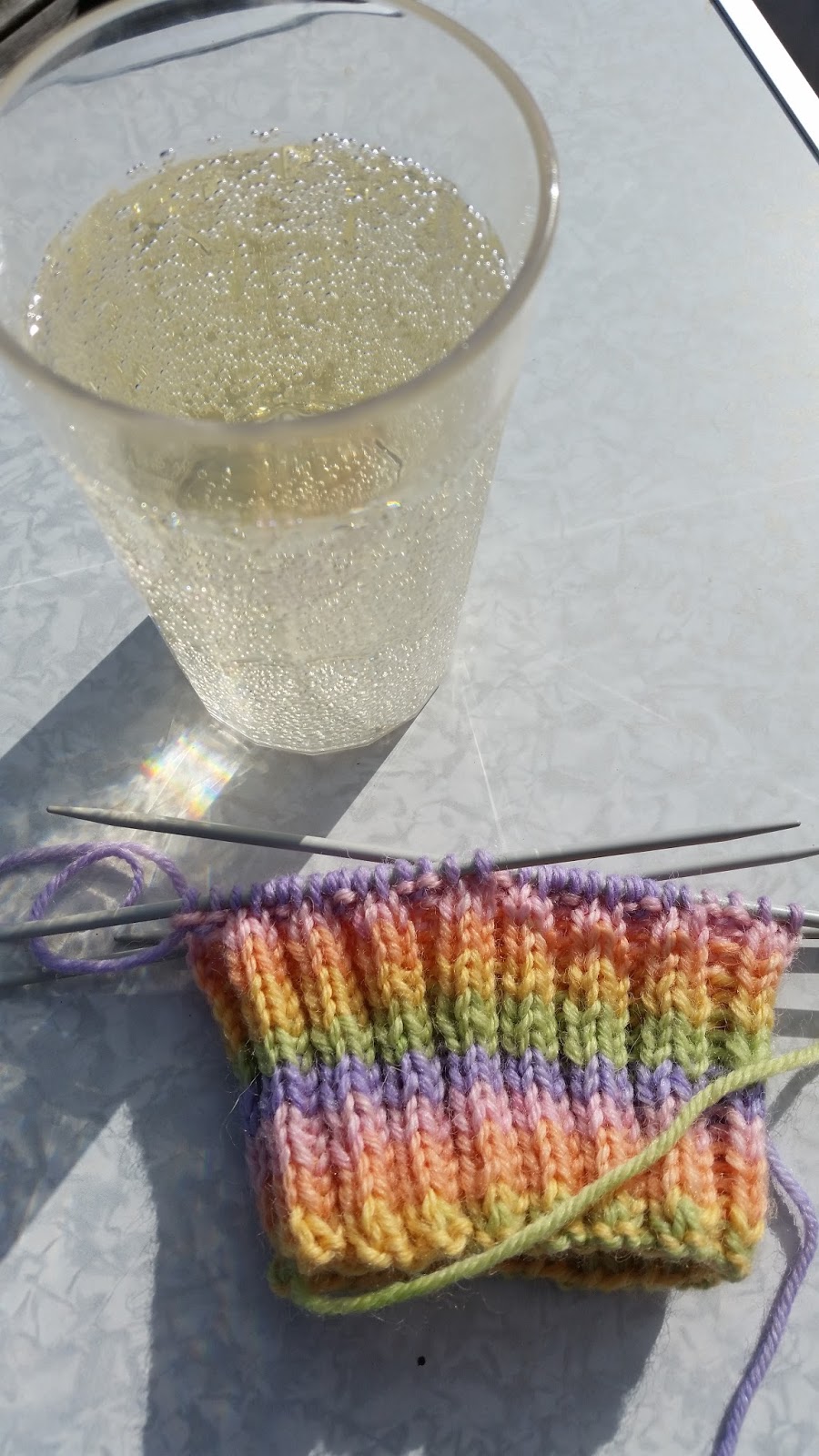 Auf dem Campingplatz haben wir es uns dann erst mal in der Sonne gemuetlich gemacht. Ralf und Donna nahmen ein Schläfchen und ich strickte an meinem angefangenen Socken weiter - bei einem Gläschen Schorle!!!